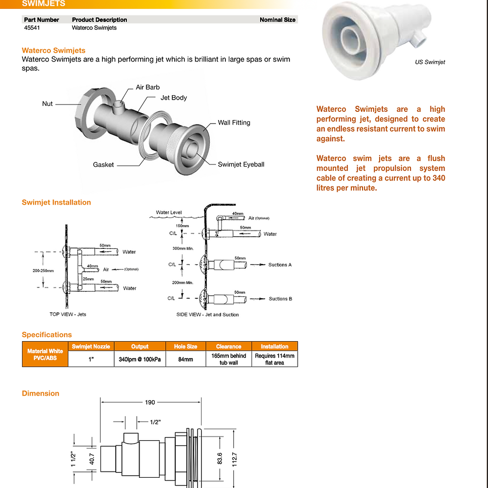 Bộ khớp tạo ngược dòng – Waterco Swimming Jet (2 Suctions & 1 Swim Jet)