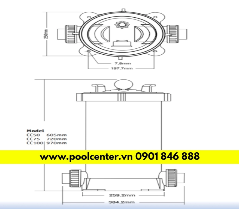 CÁC THÔNG SỐ KỸ THUẬT CỘT LỌC GIẤY BỂ BƠI WATERCO TRIMLINE CC50